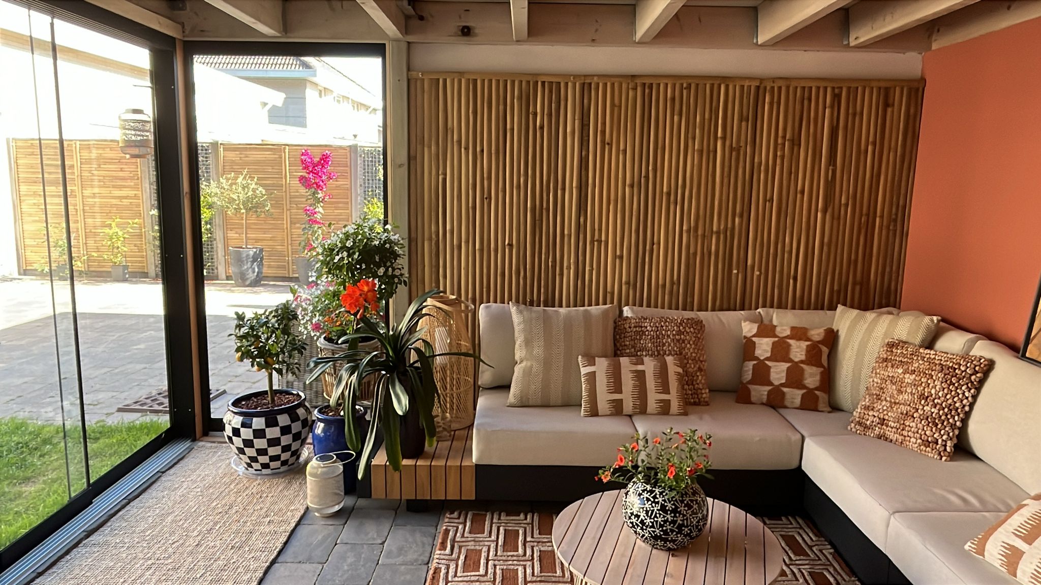 Bamboe schutting Stripe met smalle verticale latten in naturel kleur is perfect om tegen een bestaande muur of schutting te bevestigen. Binnen no-time een vakantiegevoel in je eigen achtertuin, wie wil dat nu niet? Deze schutting is 90 cm breed en heeft een hoogte van 180 cm.