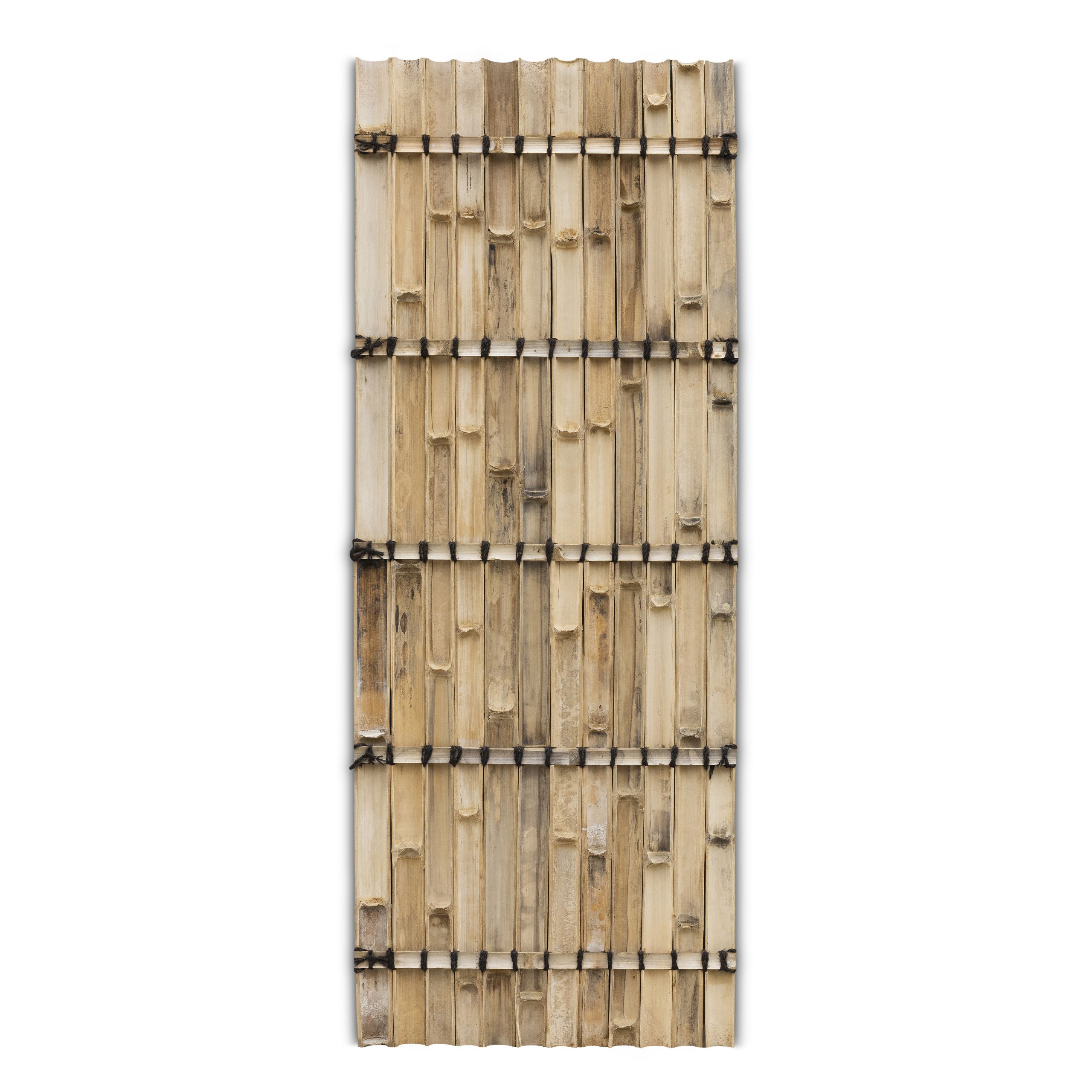 Halved bamboo fence is perfect for fixing against an existing wall or fence. In no time a vacation feeling in your own backyard, who doesn't want that? This fence is 90 cm wide and has a height of 240 cm. The halved bamboo posts of the fence are 7-10 cm in diameter and mounted together with horizontal slats and black palm rope.