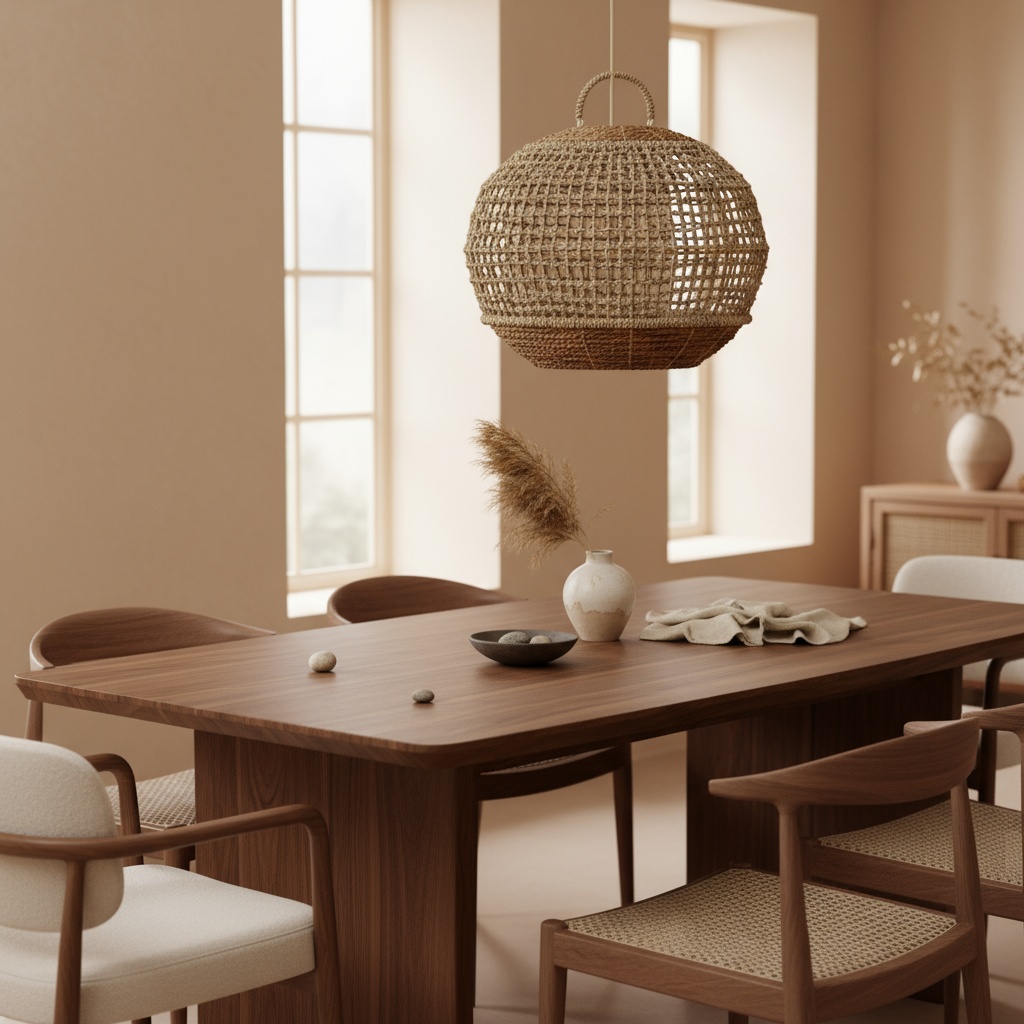 When the lamp is lit, the natural fibers gently filter the light and spread a warm, atmospheric light throughout the room. The lamp is suitable over the dining table, in the living room or as an accent in a high hallway.