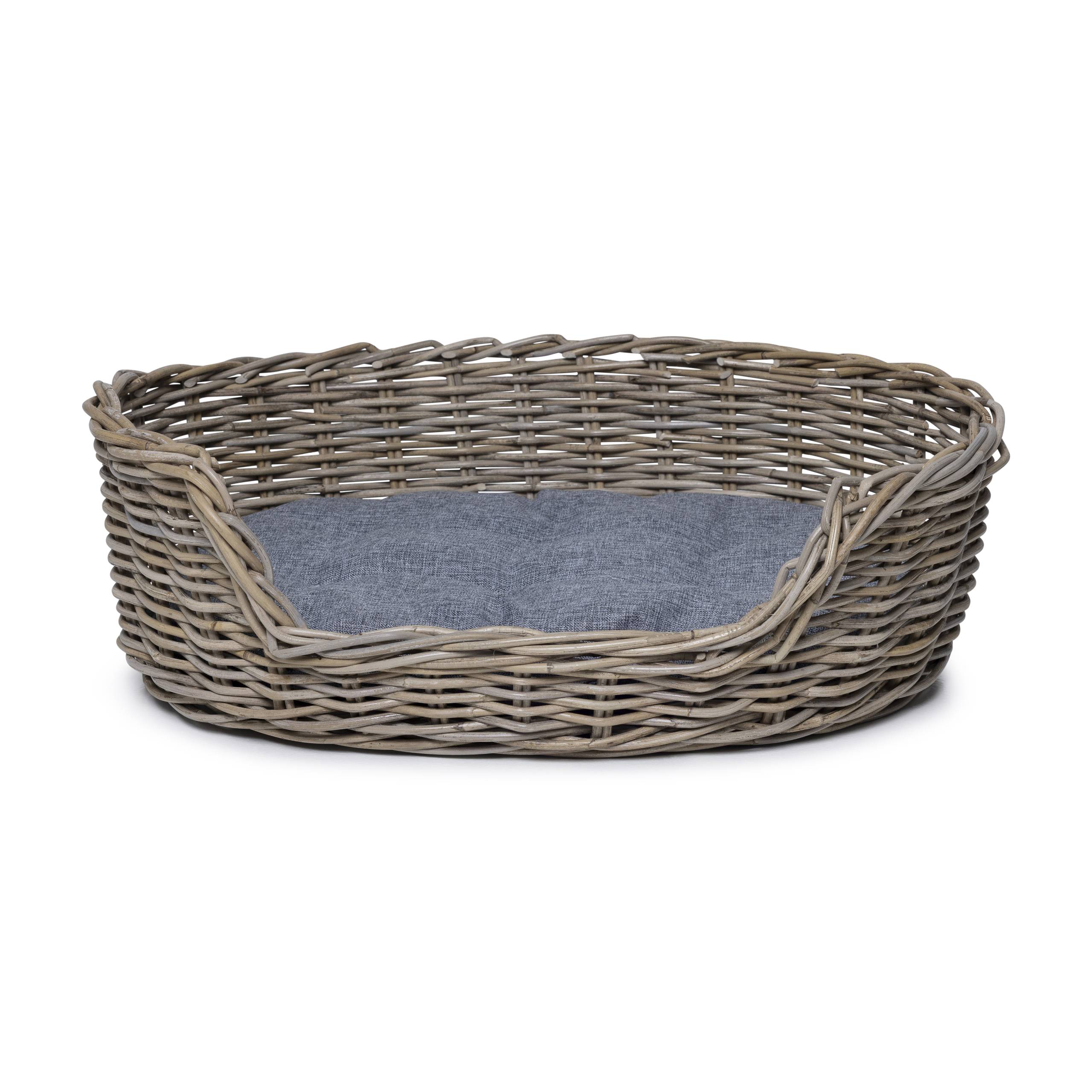 The dimensions listed are guidelines. Because this rotan dog basket is handcrafted from natural material, dimensions may vary slightly.