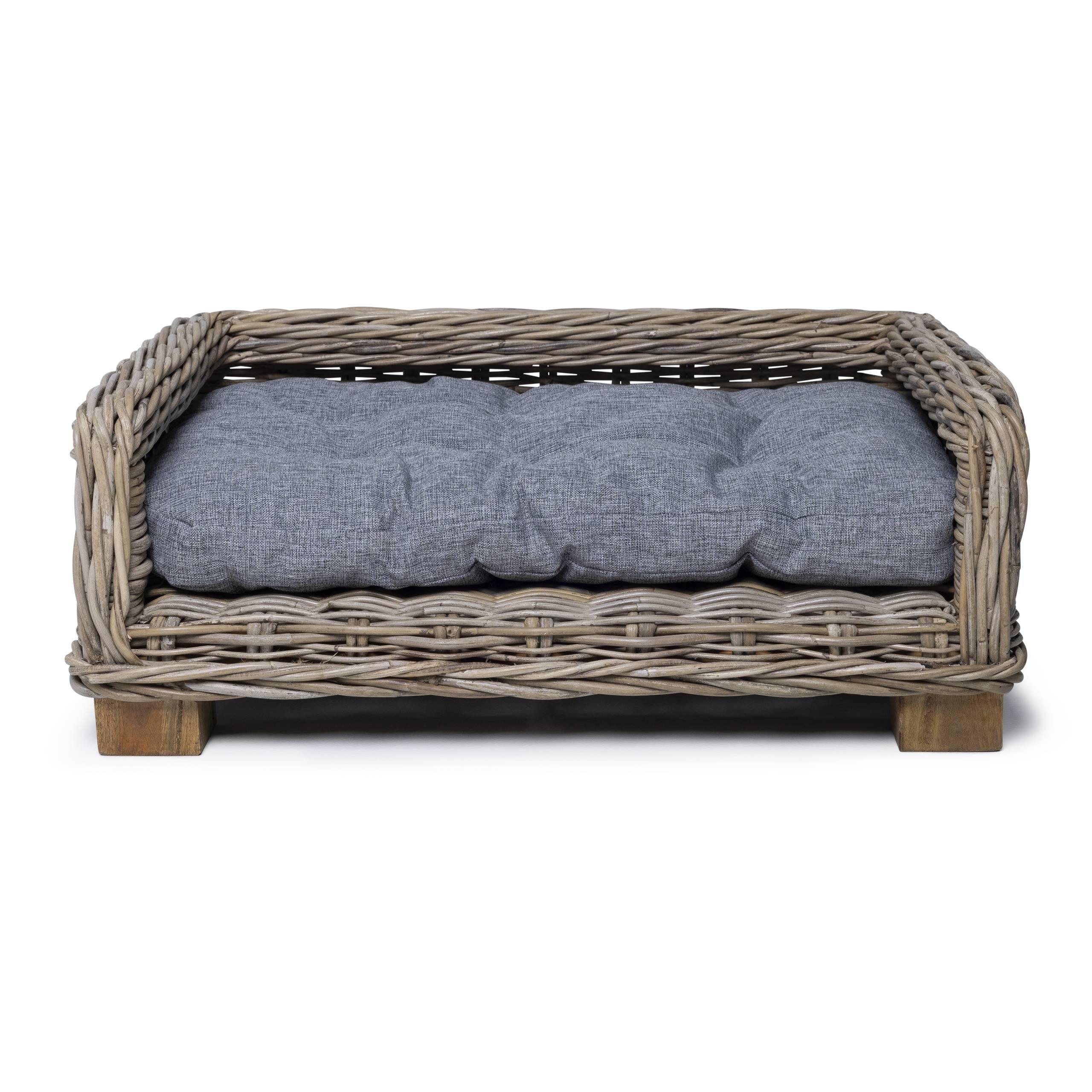 This rattan Dog Basket Rectangle 70 cm by PVB Collection is hand-woven from natural rattan, making each basket slightly different and unique. Thanks to its quiet, natural look, it looks great in almost any interior. The basket comes with a separate dark gray cushion to dream away in. Please note that the cushion is not washable. Suitable for small dogs, such as a Jack Russell.