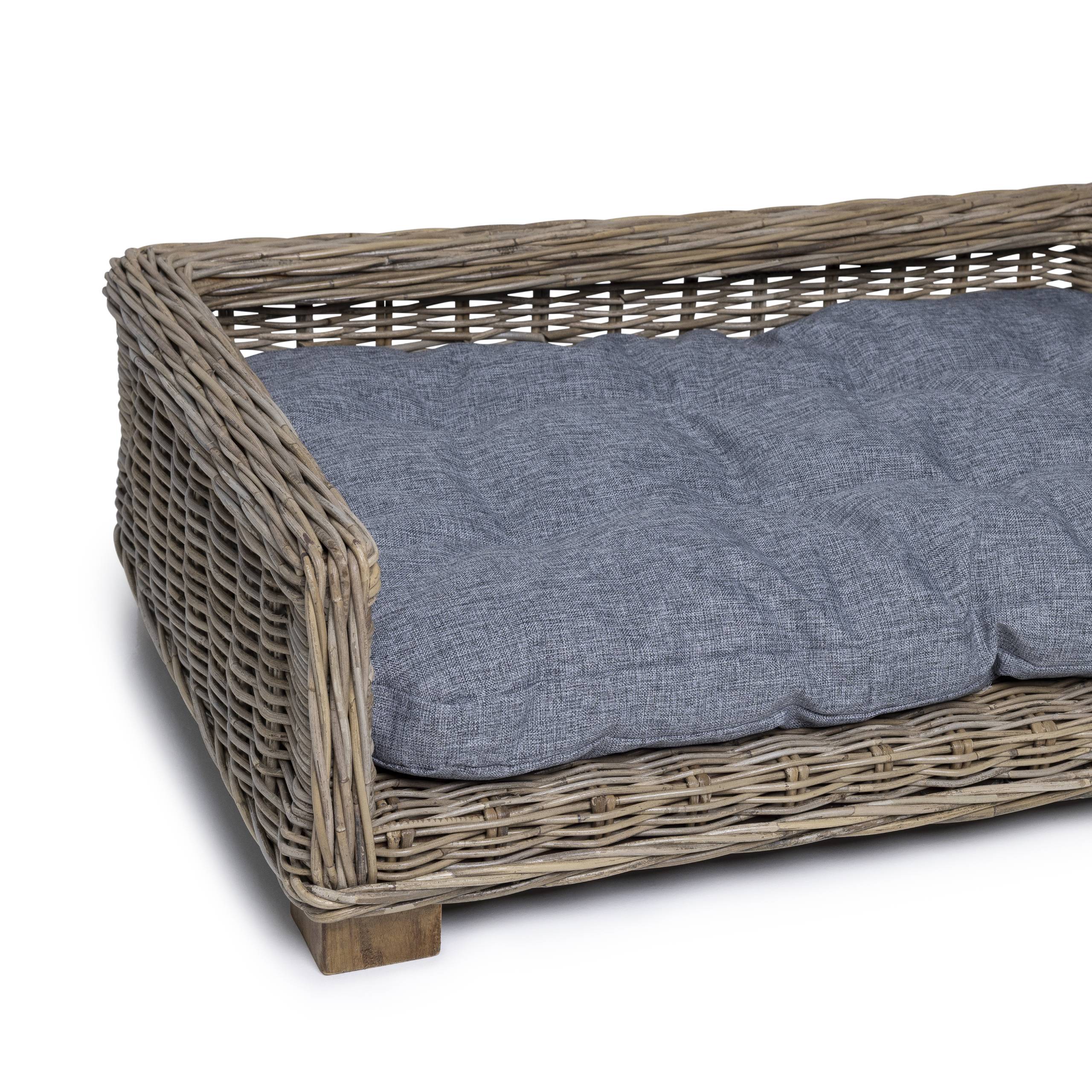 This rattan Dog Basket Rectangle 90 cm by PVB Collection is hand-woven from natural rattan, making each basket slightly different and unique. Thanks to its quiet, natural look, it looks great in almost any interior. The basket comes with a separate dark gray cushion to dream away in. Please note that the cushion is not washable. Suitable for somewhat larger dogs, such as a Labrador.