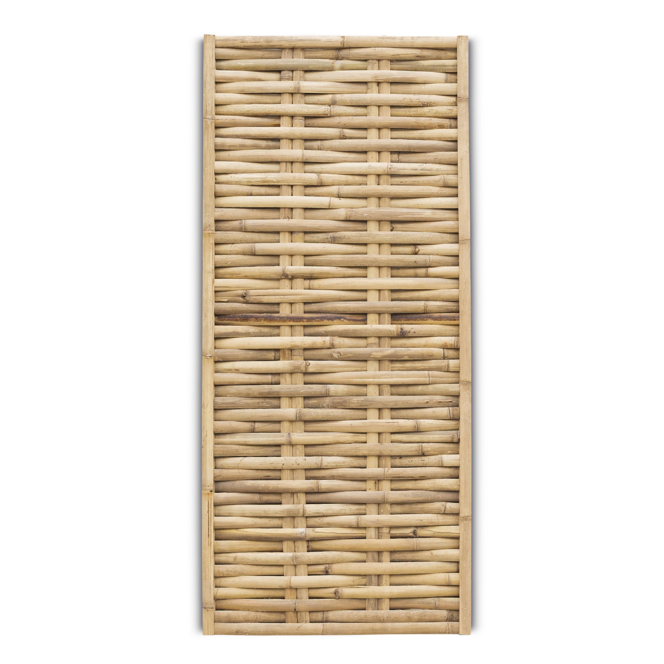 Woven bamboo fence is perfect for fixing against an existing wall or fence. In no time a vacation feeling in your own backyard, who doesn't want that? This fence is 90 cm wide and has a height of 200 cm. The slats of the wickerwork are 4 cm wide.